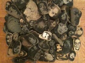 oblicza/ serigrafia na kamieniu rzecznym